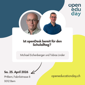 Unser CEO wird gemeinsam mit Tobias Linder von der Anykey IT AG die Session «Ist openDesk bereit für den Schulalltag?» halten. Im Zentrum des Vortrags steht die Frage, inwiefern openDesk den Anforderungen im schulischen Alltag bereits gerecht wird.
